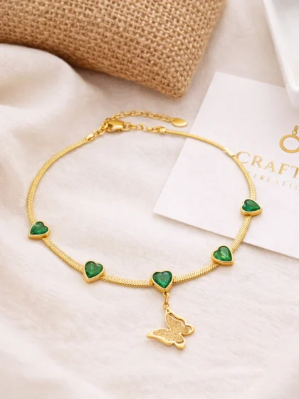 Emerald Heart Butterfly Necklace