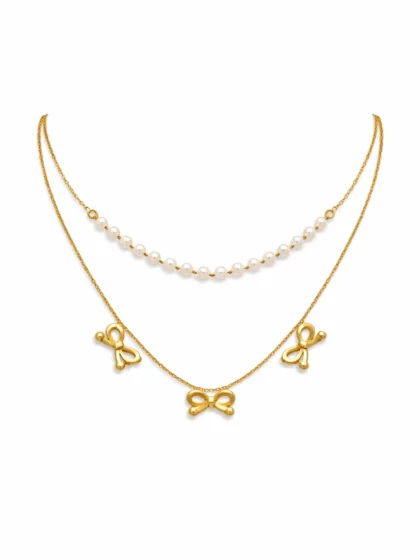 Pearl Bow Layered Necklace