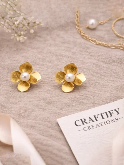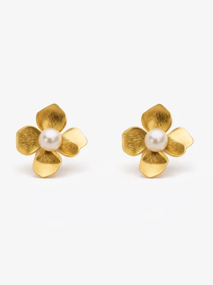 Textured Floral Pearl Stud Earrings