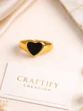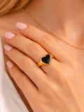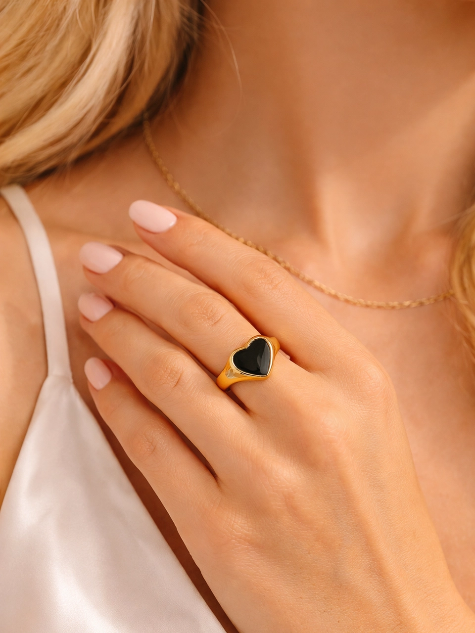The classic signet silhouette gives it structure. The black enamel heart at the center adds contrast and depth. It’s minimal from a distance, detailed up close. A piece that feels slightly vintage, slightly modern — and easy to pair with everything.