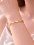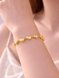 The bold heart links give it volume and presence. The smooth gold finish keeps it polished and modern. That combination makes the bracelet feel expressive without being excessive. Confident. Feminine. Designed to stand out while still being easy to style. The kind of piece that becomes the highlight of your stack — or holds its own completely.