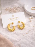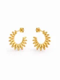 The spiral-inspired hoop design gives them movement and texture. The rounded gold curves reflect light from every angle. That combination makes them bold without feeling heavy. Modern but timeless. Statement-making yet easy to style. The kind of pair that instantly elevates even the simplest outfit.