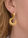 We start with high-quality stainless steel as the base metal. Then we apply high-quality 18K gold plating. After that, the earrings are sealed with a top-grade anti-tarnish coating. Not the quick dip type. A proper finishing layer designed to protect the color.