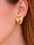 The sculpted curved shape gives them a bold presence. The dual crystal detail adds light without overpowering the design. Structured but smooth. Statement-making but still wearable. The kind of studs that elevate even the simplest outfit.