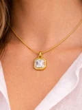 The emerald-cut crystal pendant brings a clean, subtle sparkle that feels modern and effortless. It adds just enough shine to elevate everyday outfits without feeling flashy. That balance took time to get right.
