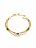 - Layered chain bracelet with emerald-toned stones