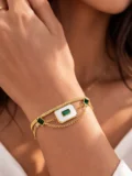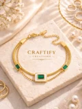 The layered chains give it depth and texture. The emerald-toned stones bring color in a quiet, elegant way. It feels polished without trying tooa hard. The kind of bracelet that makes an outfit feel more complete the moment you put it on.