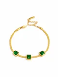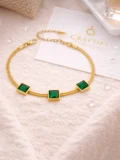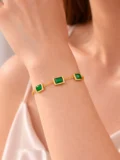 The sleek gold band keeps the design minimal and structured. The square emerald-toned stones bring depth and rich color. That contrast gives the bracelet a bold yet balanced presence. Clean lines. Strong detail. Just enough statement without overpowering your look.