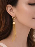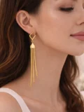 The structured top keeps the look refined. The flowing gold chain tassels create movement. That contrast gives the design balance — elegant but noticeable. Bold but still wearable.