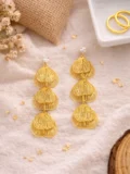 The layered petal structure gives the design depth. The fine textured lines keep each layer light and airy. The triple-drop silhouette adds movement without feeling bulky. That balance makes them bold enough for events — yet refined enough to style again and again.