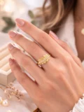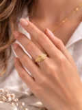 The layered leaf design wraps gently around the finger, giving it texture and shape. The fine crystal line across the center adds just enough sparkle without overpowering the design. It feels detailed. Thoughtful. A statement that still works with everyday outfits.