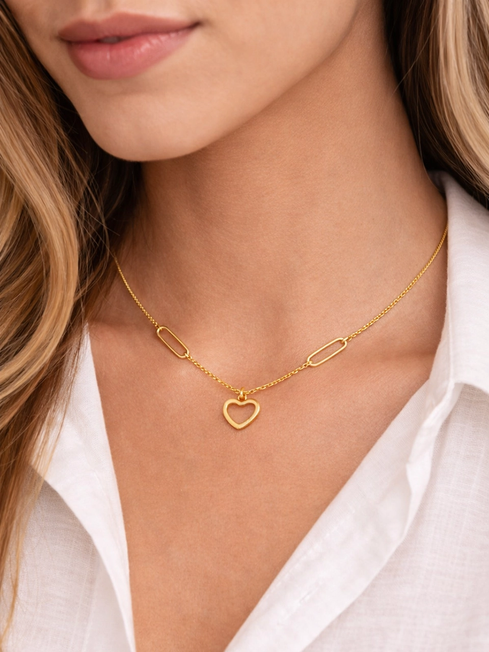 The clean link detail paired with the open heart pendant gives this piece a soft, modern feel. It’s simple, romantic, and easy to wear every day without feeling overly delicate. The kind of necklace you don’t need to overstyle. That balance took time to get right.