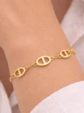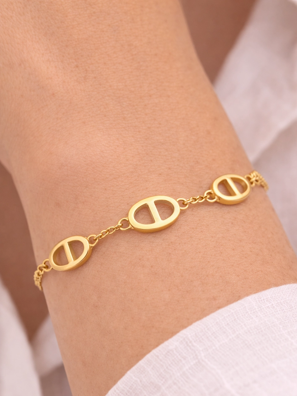 The slim chain keeps it refined. The oval cutout links add structure without making it heavy. That balance makes the bracelet feel modern but effortless. Easy to stack. Easy to wear alone. The kind of piece that quietly becomes part of your routine.