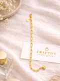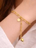 The paperclip chain gives it structure. The small disc charm adds movement. The subtle heart detail at the extender softens the look. That mix makes the bracelet feel modern but still personal. Easy to stack. Easy to wear alone. The kind of piece that quietly becomes part of your routine.